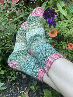 The texture pattern (both written and charted) is quite simple and looks nice in a variety of yarns - solid, tonal, self-striping, space-dyed, speckled, hand-painted, or as crazy as you want to get. It can be fun to use scraps for heels and toes or even to create your own stripes! Use your imagination and have a ton of fun with this pattern.