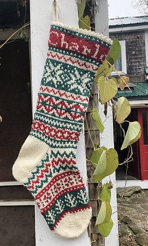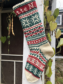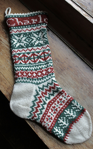 Charlotte’s Christmas Stocking is a great big happy sock, ready for all the goodies and fun of a very special Christmas season! You will find plenty of room for the orange in the toe, the special treats and toys, and the candy cane for the top. In spite of the generous size, this stocking will knit up quickly at a comfortably large gauge. The pattern includes both an upper and a lower case alphabet chart, with “Charlotte” charted as an example. There is a blank chart for you to use for personalizing your stocking. The features of this sock include a turned over lined cuff with picot edging, a Dutch (square) heel and a 4-point toe (no grafting needed!), along with a variety of Nordic colorwork motifs. Instructions also include an I-cord for hanging the stocking.
