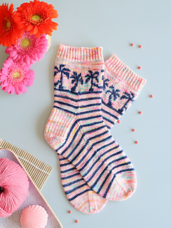 Ces chaussettes ont un vrai goût de vacances ! Imaginées avant le départ et tricotées sur place, c’est un réel souvenir aux pieds.