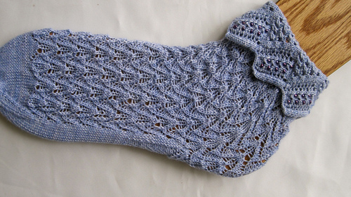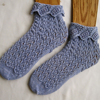 Skill Level: Intermediate (assuming a basic knowledge of both lace and sock knitting).