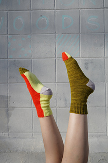 Crew height socks in 2 sizes Narrow (Wide). The pattern provides details on how to manipulate the length to accommodate various shoe sizes.