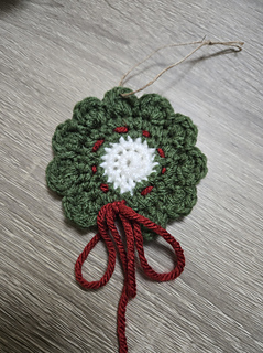Optional Decorations: 1 yard of any ww4/aran/10ply yarn in red or Jute twine, or anything else you would like to add & a Magnet, pin, or additional hanger
