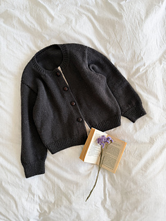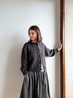 Colette Cardigan is a relaxed, top down cardigan with an elegant Japanese shoulder line and clean, modern look. The body is worked flat in rows from the neck down in classic stockinette stitch, which gives the garment a beautiful drape and great fit. The silhouette is oversized with approximately 22 cm / 8.75” of positive ease, perfect for layering over shirts and dresses.