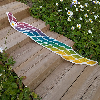 Columella is a genus of land snails with a coiled shell. The Columella scarf uses short-rows to create sideways coils and is an ideal pattern for gradient sets, or for mini-skein sets.