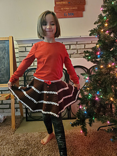 This festive skirt is flouncy and fun! Your child or grandchild will love the way it drapes and twirls. Layer it over fleece leggings for maximum coziness and warmth.