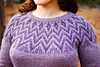 This sweater is worked seamlessly from the top down, beginning with a ribbed neckline. The yoke features stranded colorwork, with increases cleverly incorporated into the pattern. After the colorwork section, optional short-row shaping is added at the back to contour the shoulders and neckline for a better fit. Sleeves and body are then separated and worked from the top down.