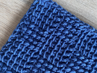 The pattern is designed in Tunisian crochet alternating Tunisian simple and reverse stitches to create basketweave-like texture. The repetitive stitch pattern and chunky yarn weight makes it a great beginner-friendly Tunisian crochet project that can be made in an evening.