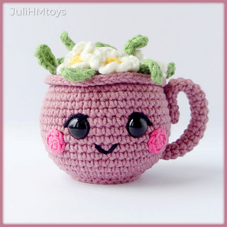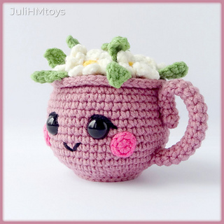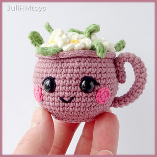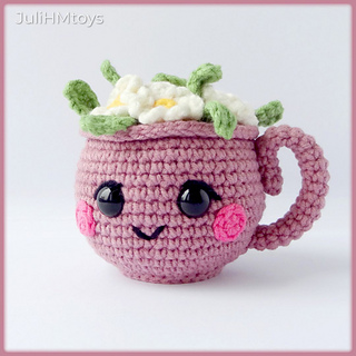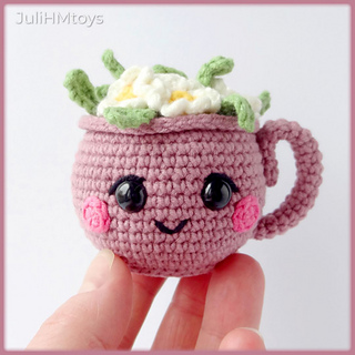 To crochet cute amigurumi cup with flowers you should know how to do do a magic ring, chain, slip stitch, single crochet, double crochet, how to make increase.