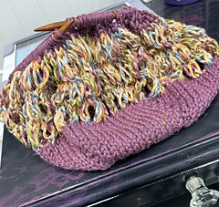 - Any color will do, even wildly variegated. Mine was from a peachy sweater that I overdyed with tans and oranges. Go nuts.