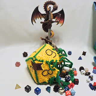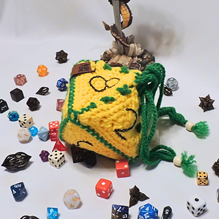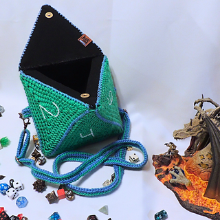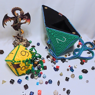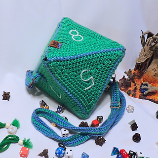 Cure what ails you with the spells and potions you keep in this D8 Dice-shaped bags. With a drawstring dice bag and a larger hinge-top shoulder bag, you can fit all sorts of provisions in your new crochet creations. Be the envy of all at your next game night when you show up with a bag of awesome!