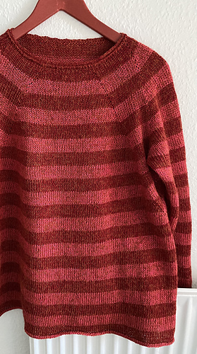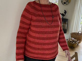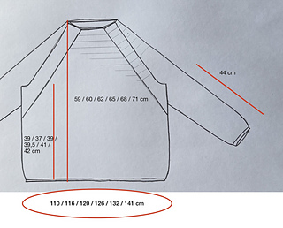 but also as a decorative detail. - The wide raglan on front continues down the body after the upper part of the body is finished.