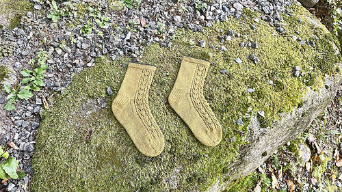 Daphne socks are feminine vibe socks with a bi-colored picot edging and simple lace patterns.