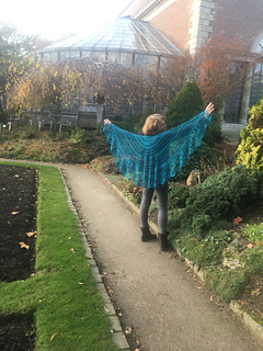 You will begin with just a few sts at center back and work out from there, working back and forth in rows. The shawl is fully reversible.