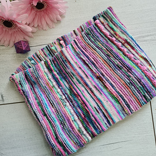 Dice is a customizable cowl design where you can mix and match 5 different textures : stockinette, garter, bobbles, feather & fan lace and eyelet stripes.