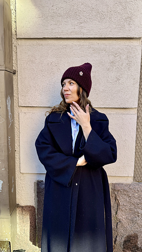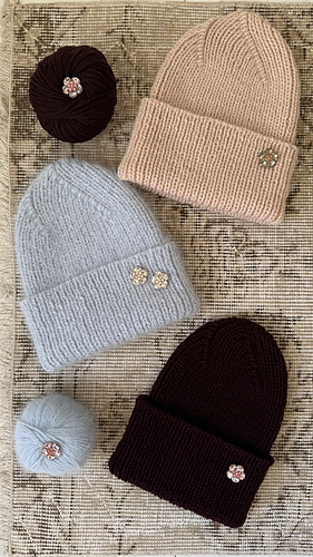 Yarn: Burgundy and pink hat: 120 (130) 140 (150) 160 g of Fonty Numéro 5 (100 % wool – 75 m / 82 yds / 50 g), colour Burgundy (205) or Pink (258).