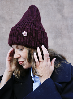 The hat is worked from forehead to crown in ribbing. At the end, the hat is turned inside out so its beautiful decreases come to the fore. The brim is folded double, and you can start with either a long-tail cast-on or the wonderfully simple Italian cast-on. Give it a go!
