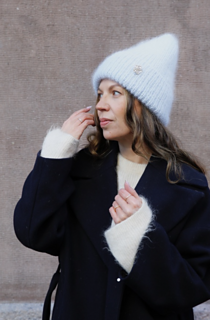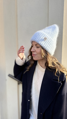 45 (50) 50 (55) 60 g of Fonty Coeur d’angora (80 % angora, 20 % wool – 108 m / 118 yds / 25 g), colour Light Blue (340).