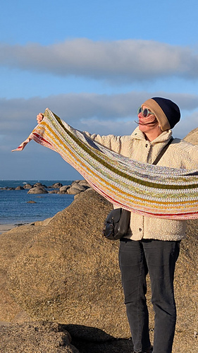 The result is a generous, lively, and surprising shawl that celebrates the magic of color and the pleasure of knitting a little each day.