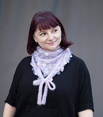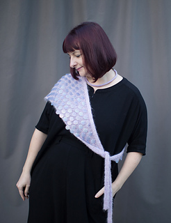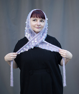 Lavender sample with matte grey sequins, shown in version A with Double Knit ribbon BO and ties.