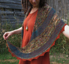 This shawl is knit from the center of the neck outwards with a fingering weight yarn. The triangle trim is knitted-on, so there is no binding off! This shawl has one size and no visible seams.