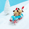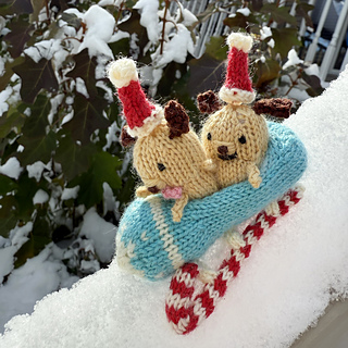 Available exclusively as a kit for a limited time! The kit contains enough yarn (a wool/nylon blend) to knit a brilliant blue bobsled and two jolly doggies to hop in for the ride. Polyester stuffing and pipe cleaners for the runners are included too!