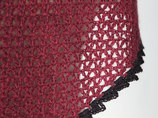 A simple border is added, either using the same yarn or a contrast colour border. Using a weight percentage system, you can work out how much yarn you need. The border requires up to 10% of the weight of the main body of the shawl.