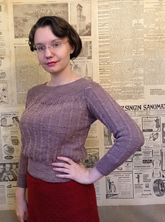 Materials: 7 ozs. “Halcyon”, 4-ply (10 ozs. for long sleeves). A pair of No.8 and circular No.10 needle; 5 small buttons, 1 press stud.
