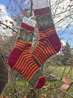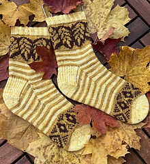 Elo Socks are a celebration of the harvest season – which also happens to be the start of woolly sock season. The socks are worked cuff-down, feature a French heel and are worked with three colours, decorated with stripes and harvest-inspired colorwork. The pattern is written for magic loop technique, but you can work the socks with dpns if you wish.