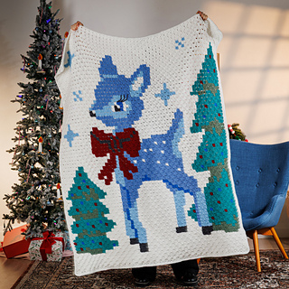 Get ‘fawncy’ for the holidays with this nostalgic crochet blanket. Designed in Red Heart Super Saver, this throw is worked in the ever-popular corner-to-corner technique. You’ll stitch small join-as-you-go block motifs to create a colorful pixel design using double crochet, chains, and slip stitches as your canvas. Customize your deer and winter forest scene using any colors you like from the extensive Super Saver palette, then show it off for all to admire.