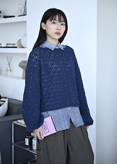 The blue version of my sample was made in size 3 using De Rerum Natura Ulysse (Color: Baleine Breuer), 6 skeins in total (1110m). For other sizes, please estimate your yarn requirement according to the total amount above.