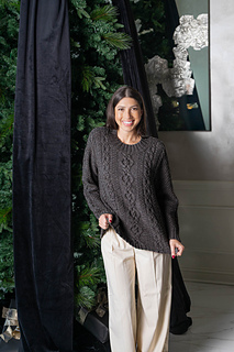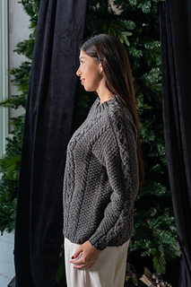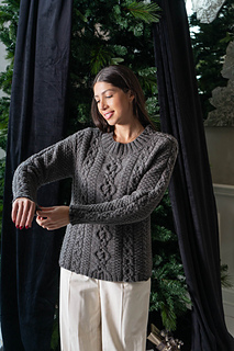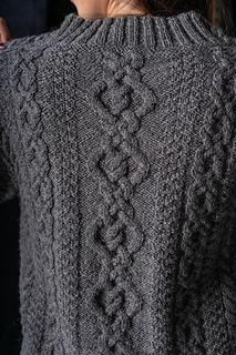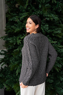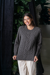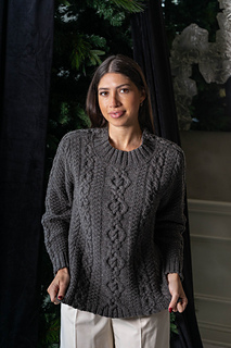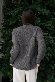 The design of this classic cabled pullover for men and women in 12 sizes (XS to 2X) and 3X to 8X is the stuff of seafaring fables, with its strong vertical arrangement of cables and textured panels. Knit from hem to neck and seamed for lifelong durability, the design features a modified drop shoulder with cabled saddle and a generous round neckline finished with ribbing. Deeply textured throughout with a slightly oversized fit for easy layering, it is delightfully lacking in bulk when knit in a lofty natural DK or heavy sport yarn.