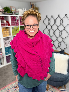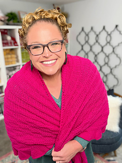 Worked in worsted-weight yarn, this shawl grows gracefully from a 9-stitch garter tab into a beautifully draped wrap-style accessory that can be styled multiple ways.