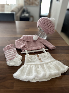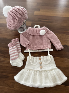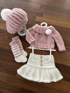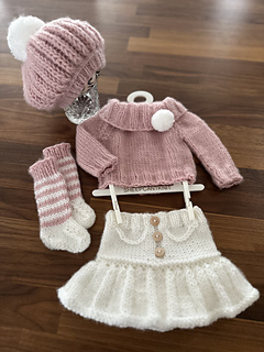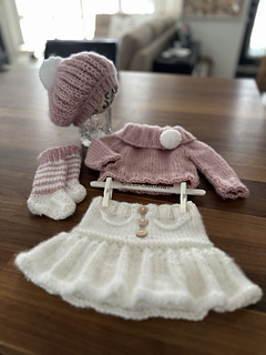 This is a downloadable PDF pattern for the knitting of this Florentina - 4 piece sweater set in newborn/20-21 inch reborn size and NOT the actual finished items. Set includes knit sweater with folded collar, skirt, pom pom beret and socks