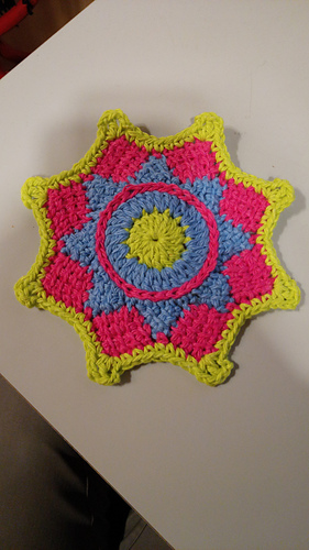 This is a really fun flower pattern, using standard crochet stitches and Tunisian Entrelac crochet stitches, which are described in detail.