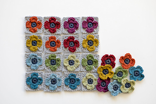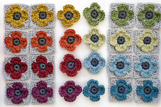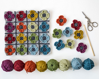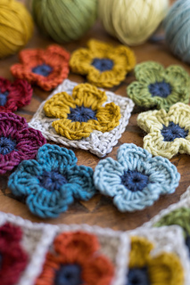 The design is a reboot of an old pattern I designed in 2015 - Mini Flower Block - using DK weight yarn instead of the original worsted.