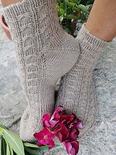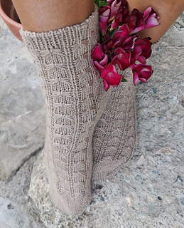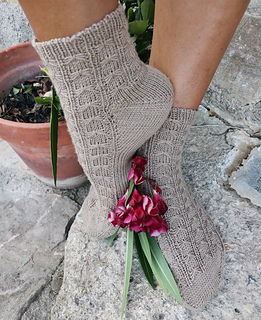 Gabbiani socks are worked toe up with a Fleegle heel. The Gabbiani pattern covers the instep and the front leg. German short rows are used to create the heel turn. Tubular bind off finishes the cuff. The instructions are written for the Magic Loop method.