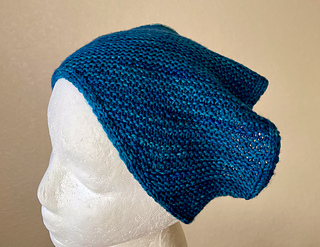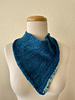 This kerchief measures 9.75”/24cm flat across the top (circumference is about 19.5”/50cm) by 9.5”/24cm deep. It’s designed to fit most adult weareres as a neckerchief or headwrap, with some negative ease in the second case.