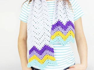 This is a super easy scarf worked in two pieces and joined together with a panel of central motifs.