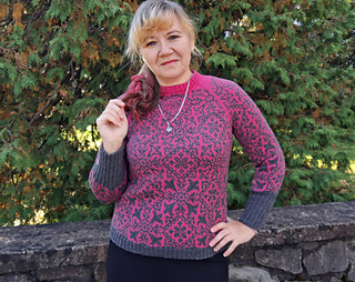 The idea for Ghali Sweater was to create a colourwork project that would go on forever. I find the stranded process very rewarding, almost like painting with yarn, and this sweater turned out pretty much as I imagined. It has a festive quality, not just because the original yarn includes sparkly stelina, but also because of the intricate colourwork motif that extends well past the sleeve separation with a 130-row chart and an option to turn it into an all-over colourwork sweater, too.