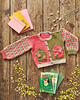 This children’s sweater by Chloé Elizabeth Birch is too cute for words! A colourwork daisy pattern decorates the sleeves, while the left and right fronts are worked in two different colours, with contrasting ribbed hems, buttonbands, cuffs and neckband. The house-shaped patch pockets have windows and doors added using Swiss darning, and finished with little knitted doorknobs.
