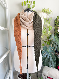 Picture a crisp morning where the world feels quiet, and all you want is something soft and familiar wrapped around your neck. The Hearthbound Scarf is that feeling in crochet form — a simple, soothing project that builds slowly from tip to tip in warm, grounding color blocks. If you can double crochet, you’re already set! This beginner-friendly scarf uses three skeins of Katia Light Alpaca Merino, a lightweight blend that brings ALL of the drape with a gentle alpaca halo. The long, tapered shape creates an easy-to-style layer that you can loop, wrap, or toss over a coat for instant comfort. And if you love to play with color, swap in your own trio — bold, neutral, or somewhere in between — for a look that’s uniquely yours.