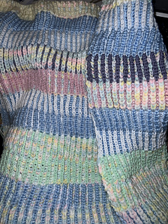 Two things inspired me to design this blanket. The first, and most important, was the birth of my first grandchild. The colors I have picked are as close as I could get to the colors of the baby’s bedroom. The second was an attempt to demystify Brioche or Fisherman’s Rib. It was a revelation to me to discover that Brioche and what my granny would have called Full Fisherman’s Rib are exactly the same fabric. (I’m going to use the term brioche from here on because it is quicker to type and to say.)