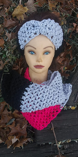 The pattern comes in One Size Fits Most for the cowl and an Adult sized Ear Warmer/Headband pattern.