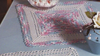 Square doily with variegated pastel centers and pastel border.