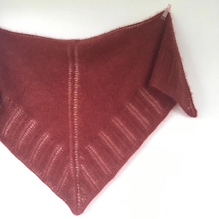Honoré, châle créé en collaboration avec Chouette Kit. Il est tricoté depuis le milieu du plus grand côté vers la pointe, d’abord tout au point mousse avec une fine torsade centrale, puis avec un motif dentelle