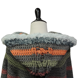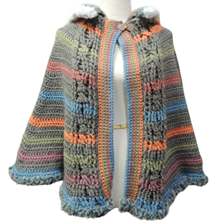A while back I created the Hoodie Cowl, and ever since I have been wanting to create a hooded cape based on it. I finally have, and it’s everything I hoped it would be! The hood still has the cable running up the back, and the cape features 3 cables, one on the back, and one on each of the front edges. The cape can be completed with 3 skeins of Lion Brand Scarfie.