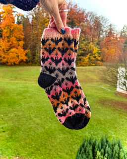 Knit from the top down with a ribbed cuff, this sock includes a simple bat colorwork pattern throughout the leg and foot. These socks are knit with a contrasting short row heel and toe.