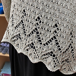 Die Lacekanten führen zu einer leicht A-förmigen Line und sind in einem kurzen, 11cm langen Lochmuster gestrickt.