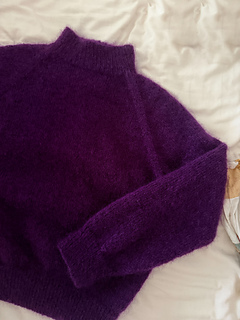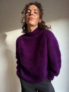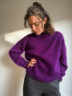 The Jade sweater is a raglan with a classic and timeless cut. Knitted in mohair and silk, it is distinguished by its soft and warm texture, ideal for cooler seasons. Its fit is comfortable and slightly loose, with understated finishing that highlights the fiber. It is knit top-down. Short rows worked back and forth are used at the beginning to shape the neckline. The yoke is then worked in the round until the body and sleeves are separated. The sleeves are then picked up and knitted in the round around the armhole. Jade’s clean design makes it a perfect everyday piece, a wardrobe essential. The Jade sweater requires no seaming.