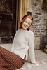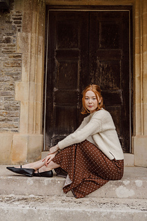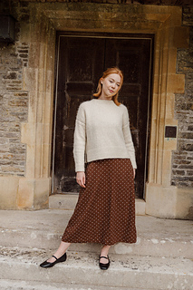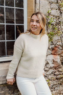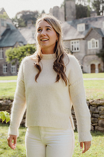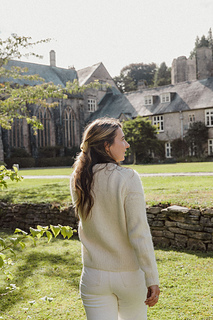 Jasper (pull) is a drop-shoulder sweater, featuring a superb shoulder detail on the upper back, a double ribbed neckline, a pretty cable at the top of the sleeve, and open sides.